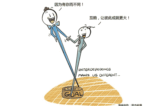 但你很快就遇到了瓶颈,并渐渐发现,自己一个人能做的事情,终究是有限的。你从害怕依赖别人,到开始尝试和别人合作,甚至把自己的后背交给信赖的战友。一群各有优势但都不完美的人,彼此合作,终于成就了一番真正的事业。我们把这个阶段,叫做“互赖期”(Interdependent),也就是互相依赖期。依赖显然不成熟,独立其实也不成熟,只有基于彼此优势的互相依赖,才是真正的成熟。回到最开始的案例。关系型公司,是“依赖型不成熟”的典型,它严重地单方向依赖对方。所谓“衣食父母”,给你吃、给你穿,是依赖型不成熟的代名词。城市型公司,是“独立型不成熟”的典型,他极端地恐惧依赖外部,希望完全靠自己。所谓“自给自足”,什么都自己种、自己养,是独立型不成熟的代名词。