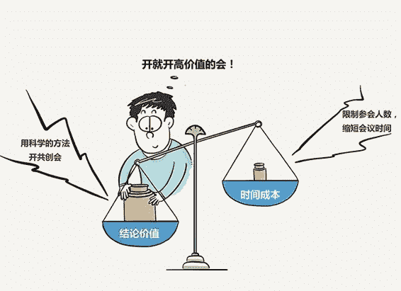 除此之外,还有一些办法,比如给会议室定价,只允许站着开会,开远程会议,在微信群里开会等等,都是减小时间成本的好办法。