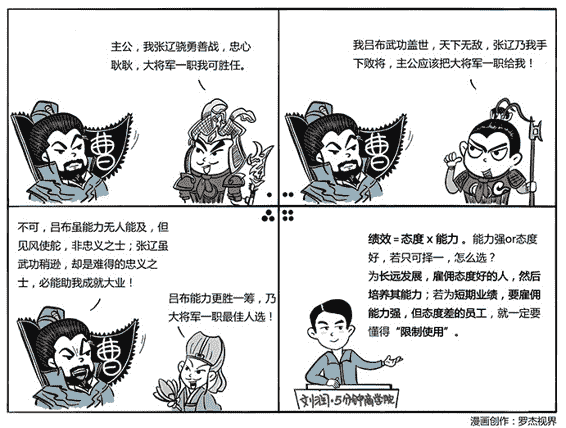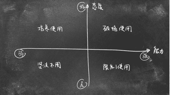 第三,对于态度好,能力弱的,培养使用。这部分员工,是价值被低估的潜力股。你应该先感谢上天让你们相遇,然后不管有没有位置,先请他们上车,给他们充分的培训、实战的练习,施展的机会。他们有机会成长为公司真正的骨干。