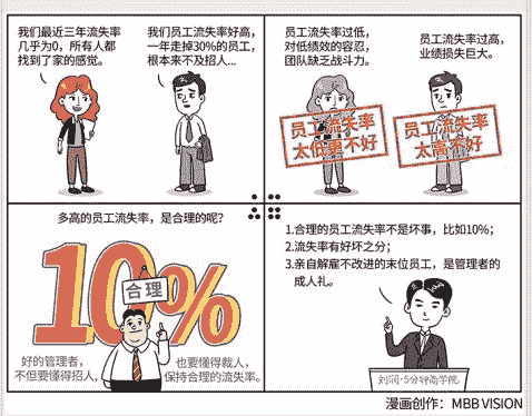 第二,流失率有好坏之分,20%的优秀员工离职,是坏流失率,10%的末位员工离职,是好流失率;
