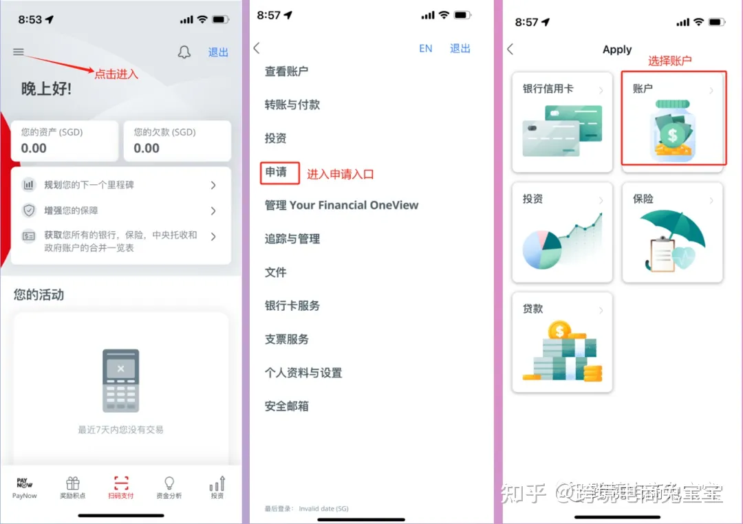 应用商店搜索OCBC,下载App:OCBC Digital - Mobile,打开后把语言换成中文,点击注册成为新用户。