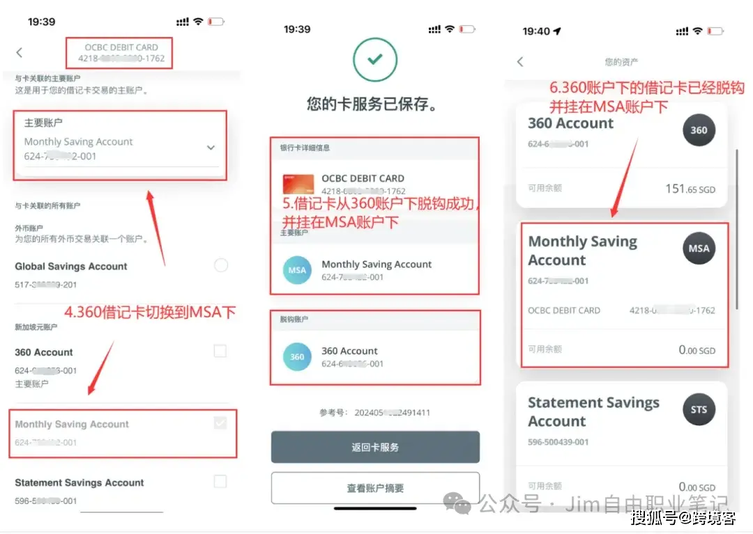 6.退出app后,再次登录,可以看到借记卡已挂在MSA账户下,以最低的成本持有OCBC银行卡成功。