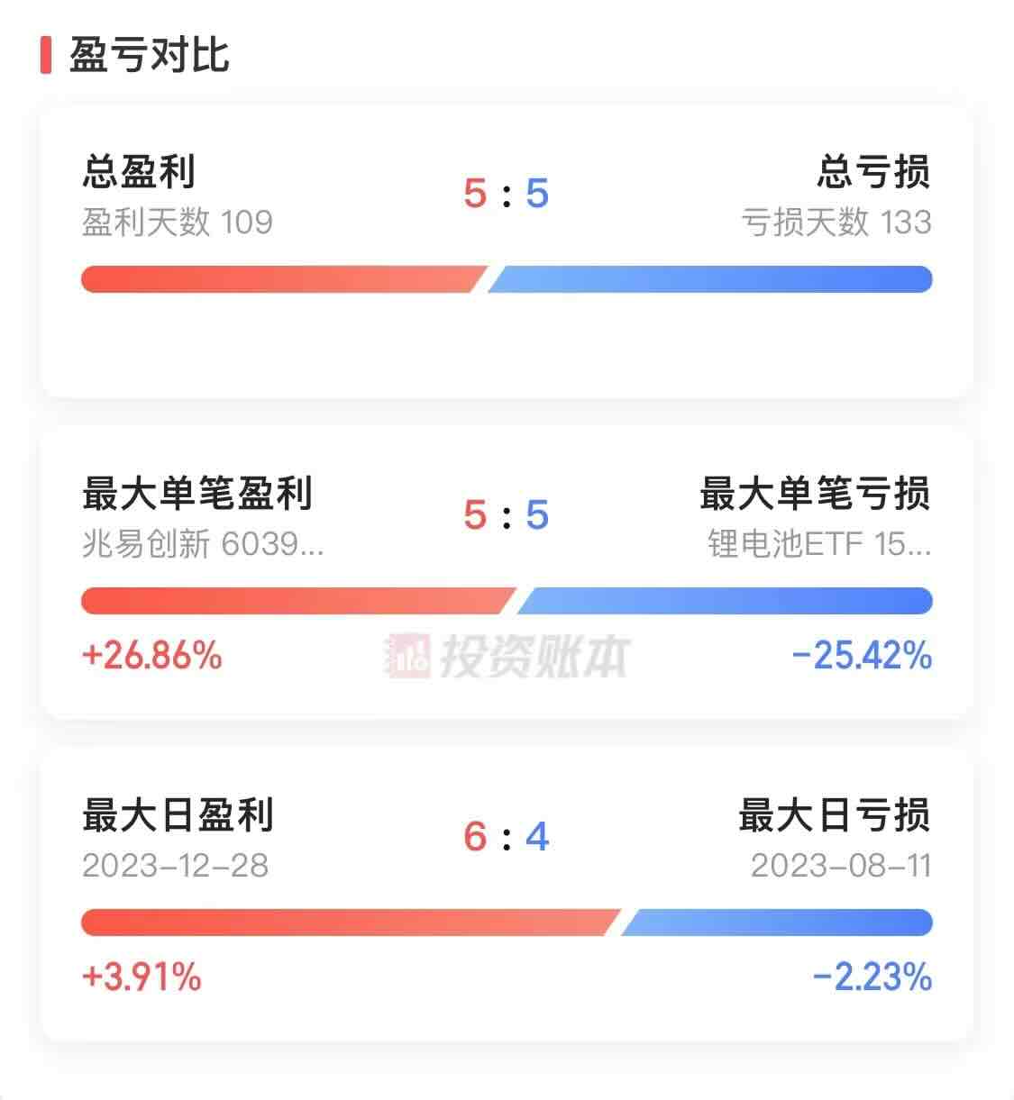 盈亏对比: