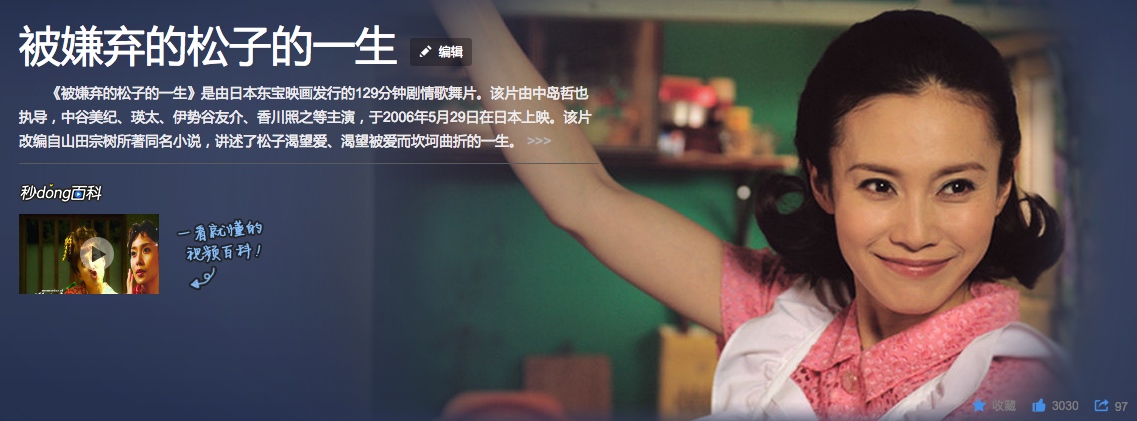该片改编自山田宗树所著同名小说,讲述了松子渴望爱、渴望被爱而坎坷曲折的一生。